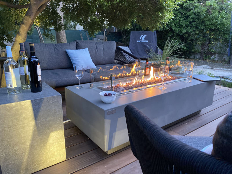- Un couvercle de foyer pour transformer votre table brasero en une véritable table basse, une housse de protection imperméable, ainsi que